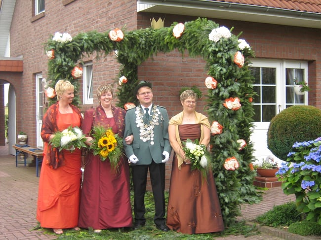 von links: Ehrendame Claudia Rußmann, Königin Sabine Theuser König Detlef Theuser, Ehrendame Heike Lüllmann