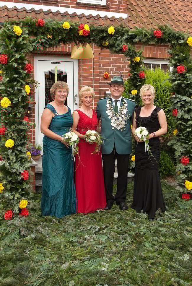von links: Ehrendame Ruth Rickers, Königin Jutta Fuhrmann, König Manfred Fuhrmann, Ehrendame Karin Brinkmann